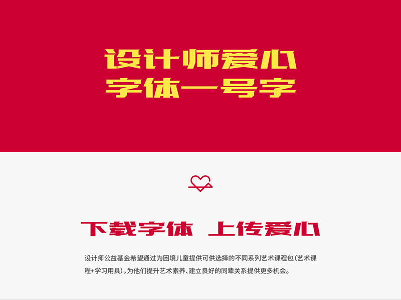 “设计师爱心字库,一方面可以让设计师有更多的字库选择,另一方面,也让大家通过对爱心字库的捐助与下载,为公益事业献上爱心,这是一件美好和温暖的事情。我非常期待1号字能够得到大家的认可,说实话,也更期待1号字能完成目标捐款金额。如果能够顺利完成,这会给我们带来更大的勇气和信心,爱心字库这份事业,我们会更有劲头的做下去!”