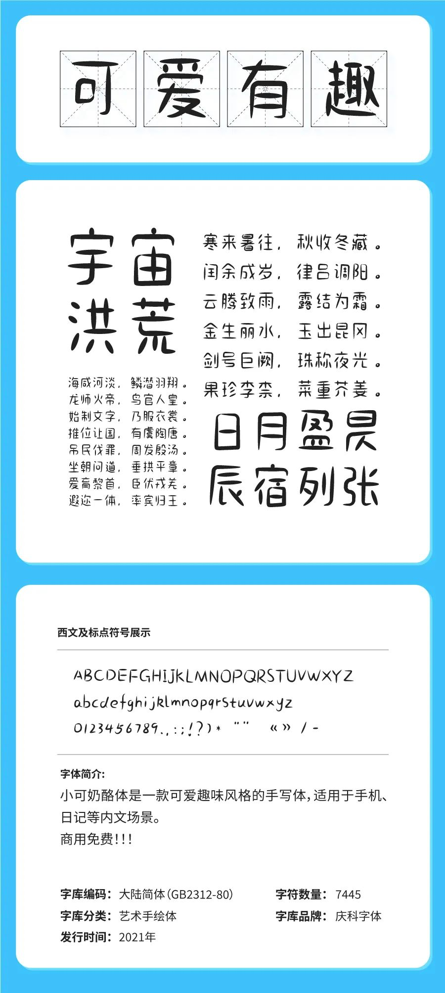 小可奶酪体是一款可爱趣味风格的手写体,适用于各种小情趣、文艺、日记等内文场景。
