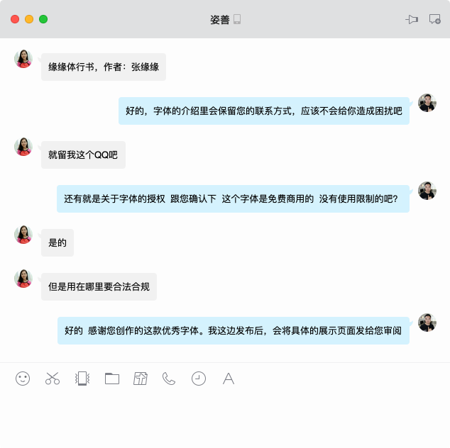 已经咨询过字体的作者,作者确认缘缘体行书可以免费商用,但使用的场合需要合法合规;