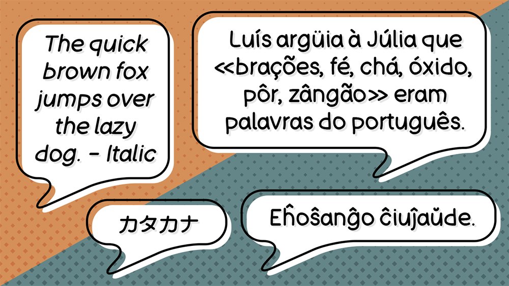 支持 86 种语言:Aghem, Aja, 阿尔巴尼亚语, Aromanian, Asturian, Azeri, Basaa, 白俄罗斯语, Breton, 保加利亚语, 加泰罗尼亚语, Central Yambasa, 克罗地亚语, 捷克语, Dagbani, 丹麦语, Duala, 荷兰语, 英语, 世界语, 爱沙尼亚语, 母羊语, Ewondo, 芬兰语, Fon , 法语, Fula, Gagauz, 德语, 匈牙利语, 冰岛语, 伊博语, 印度尼西亚语, 爱尔兰语, 意大利语, 日语 (片假名), Jula, Kabyle, 哈萨克语, Khoekhoe, Koyra Chiini, Koyraboro Senni, 吉尔吉斯语, Lakota, 拉丁语, 拉脱维亚语, 立陶宛语,马赛语、马其顿语、马耳他语、马普顿贡语、蒙古语、Ngiemboon、恩贡巴语、北萨米语、挪威语、波兰语、葡萄牙语、里夫语、罗马尼亚语、俄语、苏格兰盖尔语、塞尔维亚语、塞尔维亚语、Shawiya、Shilha、Skolt Sami、斯洛伐克语、斯洛文尼亚语、西班牙语、瑞典语、他加禄语、鞑靼语、特拉帕内克语、土耳其语、土库曼语、乌克兰语、乌兹别克语、瓦伊语、瓦尔泽德语、威尔士语、西弗里西亚语、扎尔马语、扎扎基语、祖鲁语。
