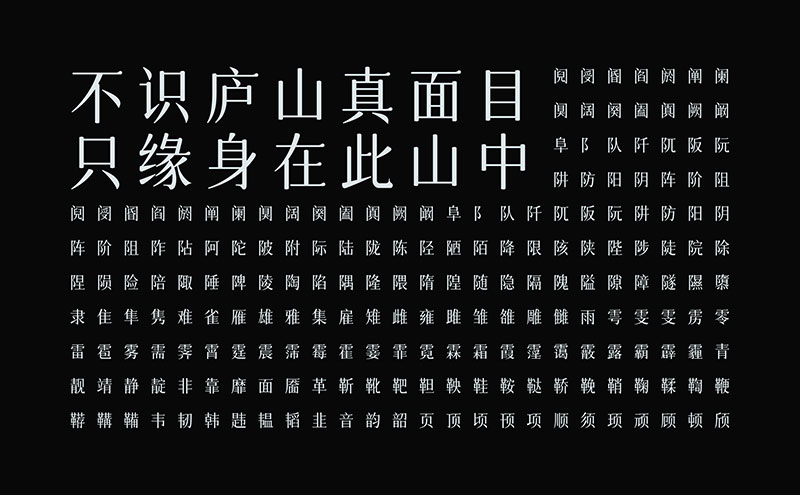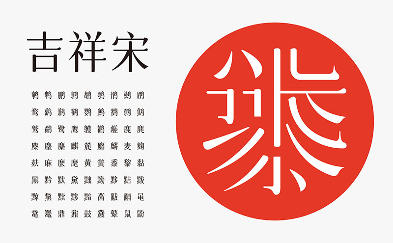 这套字涵盖国家GB2312编码标准的6763个中文字符,52个英文字符,10个阿拉伯数字,若干个标点符号,按需添加若干生僻字,共7000余字符。这是一套宋体风格的标题字,风格整体偏圆润古风,目前市场上免费商用的宋体字,除了思源宋体,好像就是思源宋体的修改版,没有专门设计风格的宋体字。