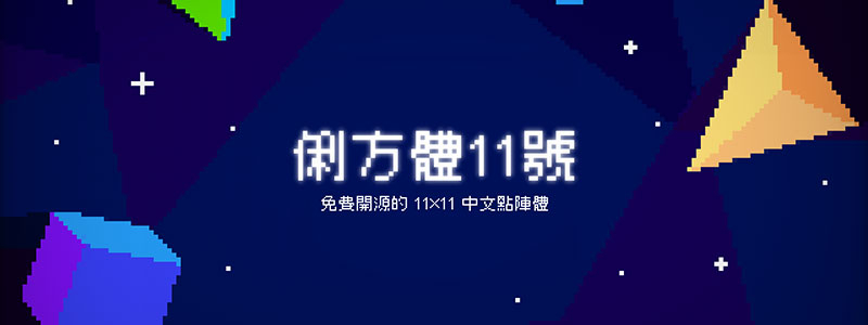 俐方体11是基于M⁺goic 12r衍生的开源繁体中文11×11点阵字体,可用于创意风格的游戏以及算法原型。