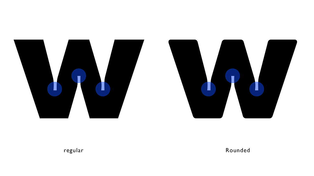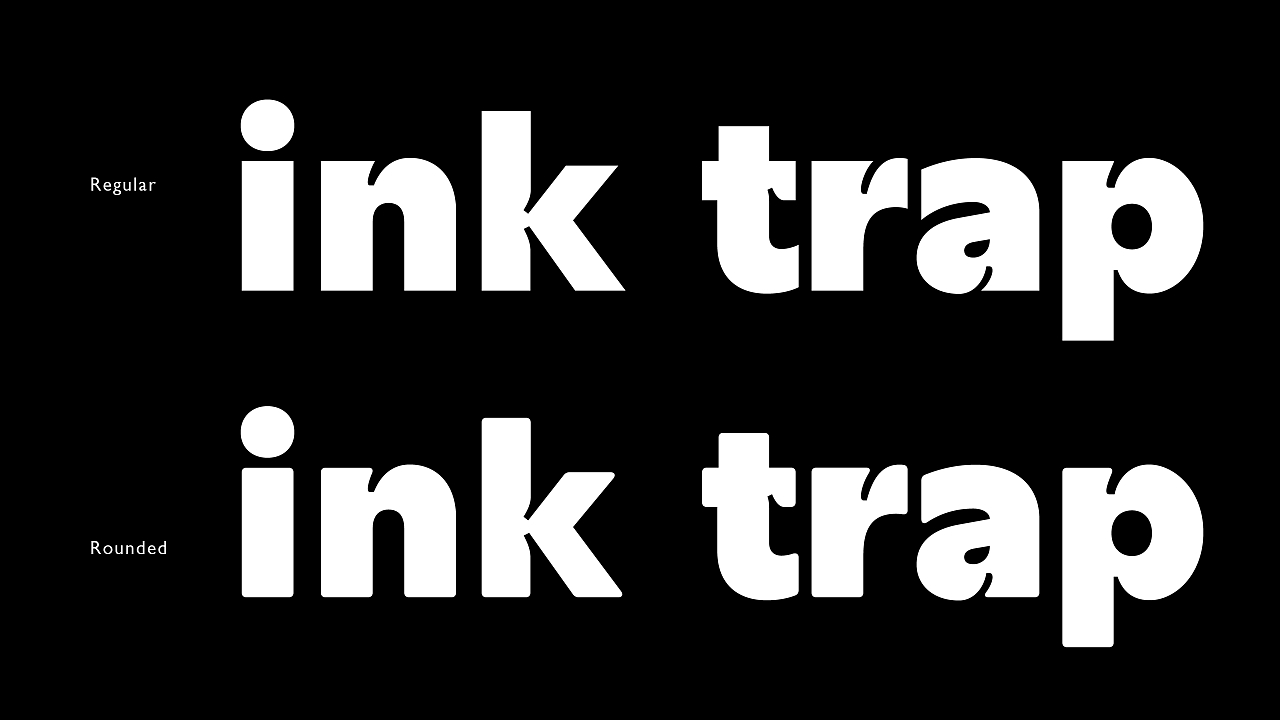 设计了一款时下较为流下的 ink trap 风格,包含 Rounded 款,因字重接近 black ,适合用在标题类。
