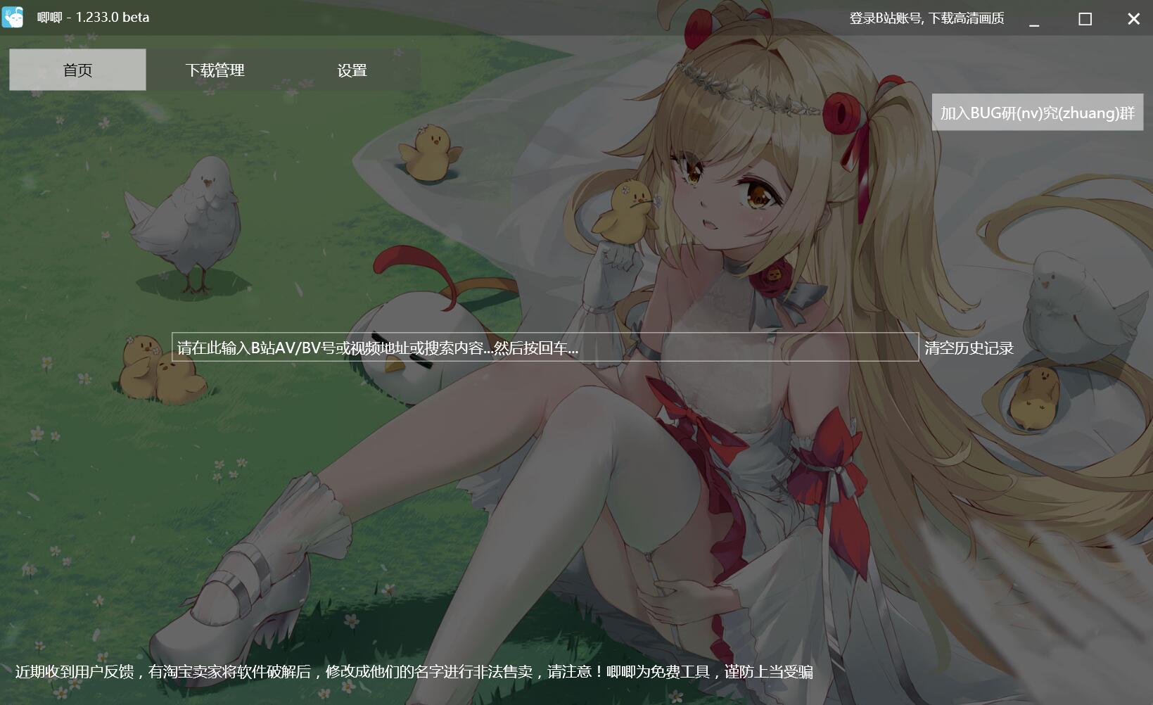 软件说明:这是一个用于下载bilibili视频的PC应用程序,它能够下载99%bilibili视频(不支持番剧),并且它将会终身免费提供使用。