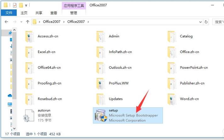 1、打开Office 2007 解压文件夹后,如图:双击【setup.exe】即可进入Office 2007 软件的安装界面。
