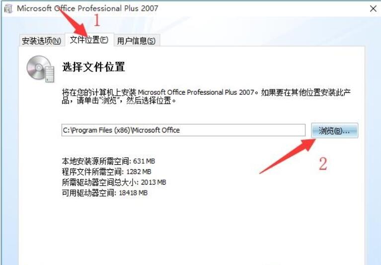 ①在【文件位置】栏,点击【浏览】更改软件的安装目录。