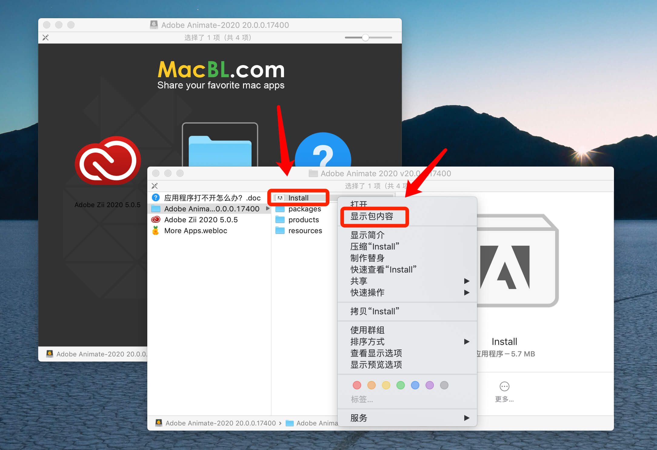 1.打开出现问题的 Adobe 软件的 DMG 安装包;