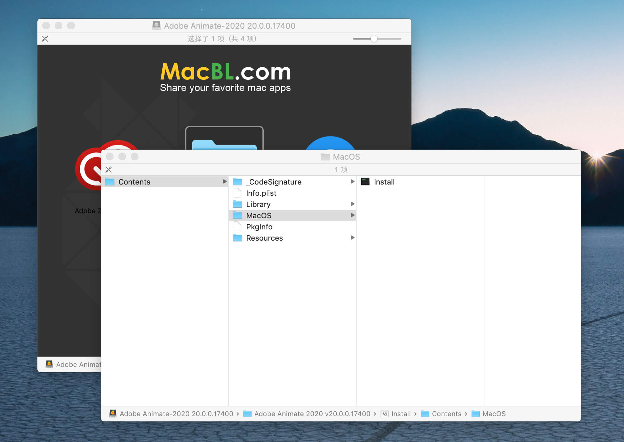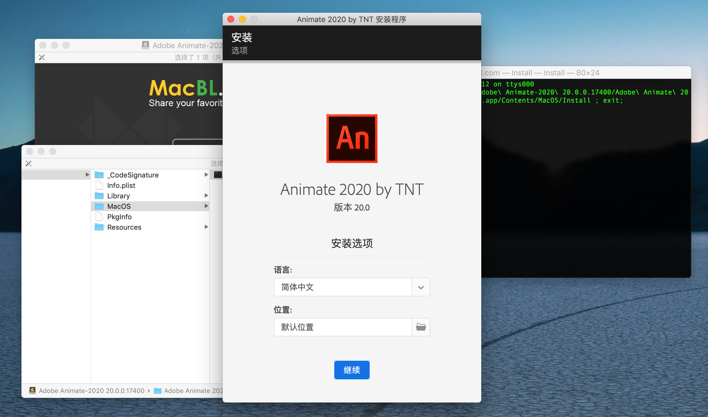 4、双击 MacOS 目录中的 install 可执行文件(黑色图标),就可以开始正常的安装流程啦。