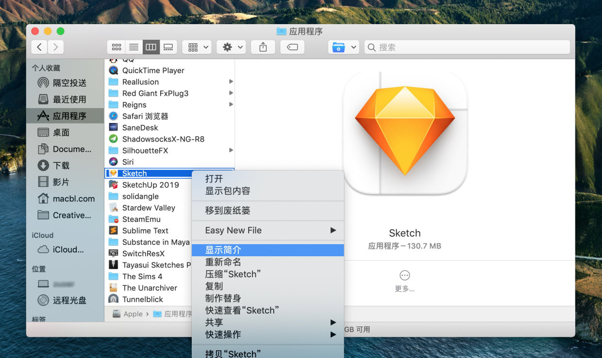1.打开 访达 - 应用程序,找到闪退的应用,在应用图标上右键,然后点击「显示简介」。