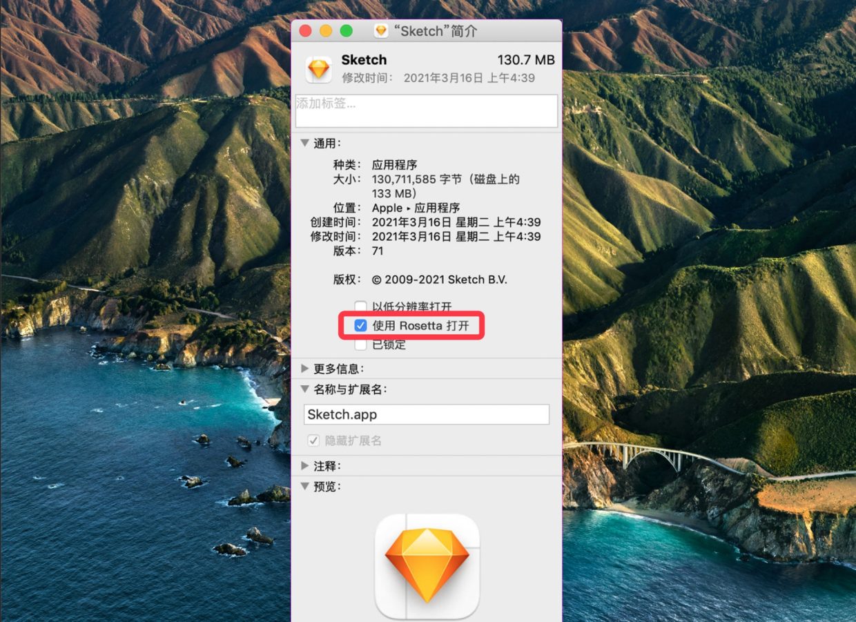 2.勾选「使用 Rosetta 打开」
