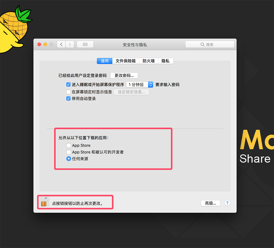 若没有“任何来源”这个选项(macOS Sierra 10.12及以上的用户可能会遇到),按以下步骤执行: