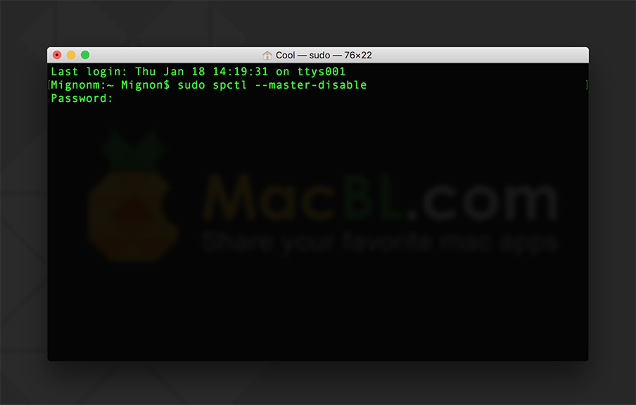 - 拷贝粘贴 sudo spctl --master-disable,按回车键