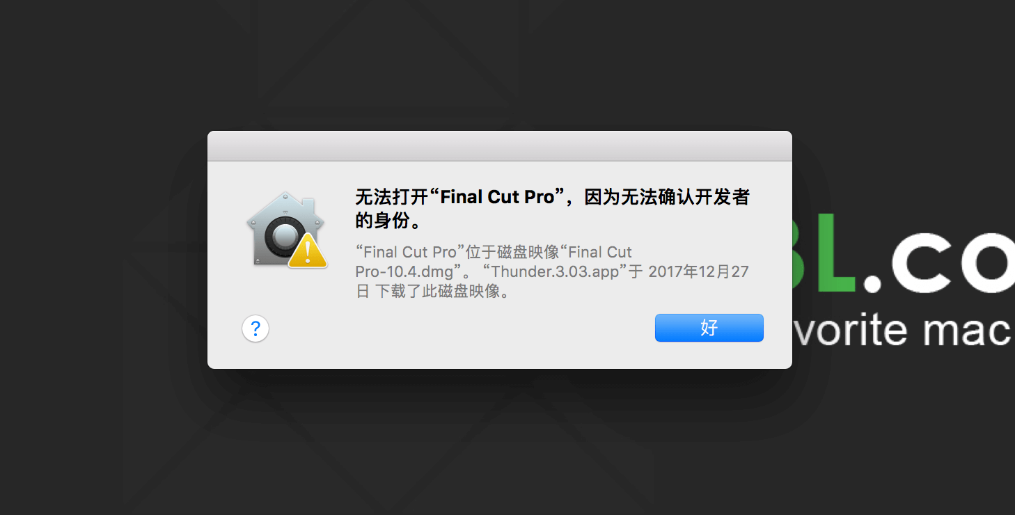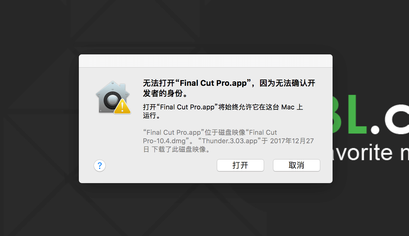 如安装应用时,出现 “ 打不开 XXX.app,因为它来自身份不明的开发者 ” ,并提示你的软件在什么位置什么时间下载了磁盘影像。如图所示: