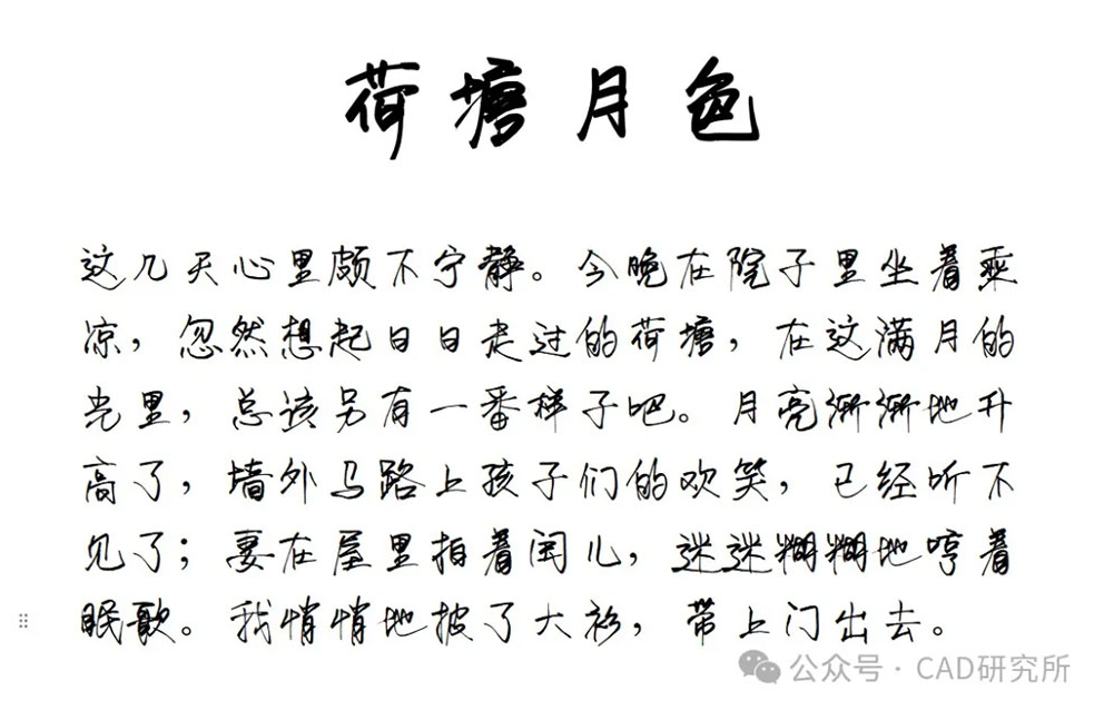 文字流淌了百年,但依然为无数人带来心灵的慰藉。于是,我决定将这款字体命名为“荷塘月色”,因为我开始创作这款字体时,正是在一个盛夏的夜晚。希望大家在使用这款字体时,能感受到它名称所蕴含的意境,体会到内心的宁静。