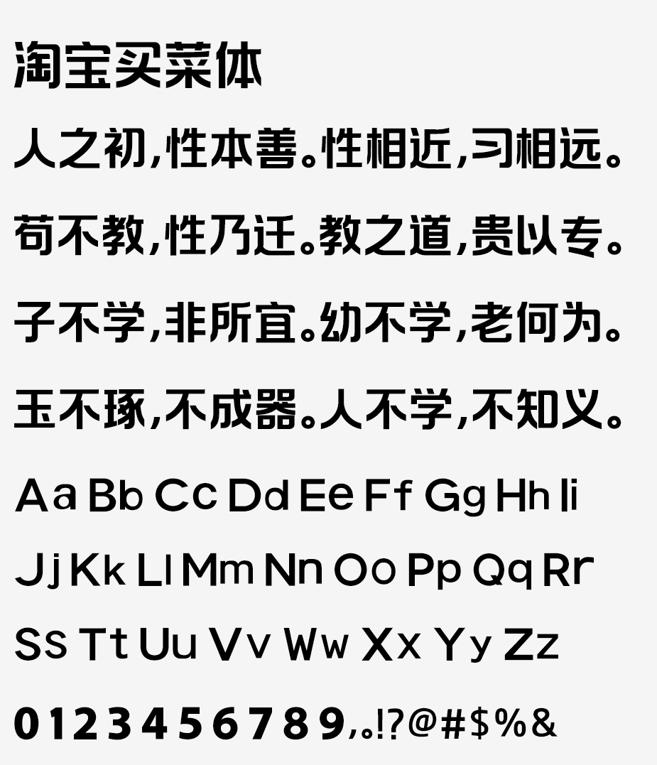标有“永久免费正版商用”的淘宝买菜字体,可以用于贵司的所有品牌宣传,但有限制条件:字体不可作为logo字拿去商标注册,以及不能二次创作。
