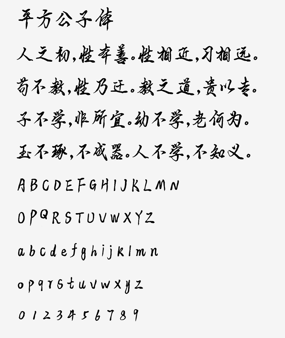 平方公子体是一款兼具艺术美感与实用性的手写字体,其字形严谨端庄,笔触工整利落,风格简约而不失雅致。独特的书写韵味,呈现清新隽永的视觉体验。